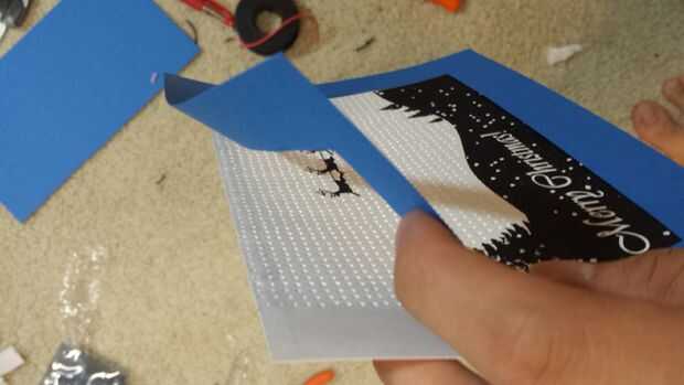 A continuación, utiliza el pegamento caliente y colocar una capa alrededor del borde de la cartulina. Esto se utilizará más tarde para mantener bajo el envoltorio plástico en el paso 6. Luego establecer algunos más pegamento alrededor del área del árbol. Ayudará a contener la luz LED verde y evitar la propagación tanto en el fondo.