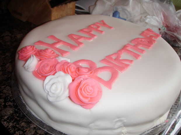2-poner un ramo de rosas en el lado de un pastel blanco limpio hace una mirada limpia aseada. Especialmente si solo usas una de otro color. Esta técnica también se ve mejor con rosas de fondant. Es importante agregar otro diseño (generalmente de la escritura) en el centro de su torta.