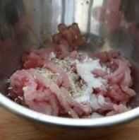 Al vapor albóndigas de carne de cerdo sobre Col de Napa