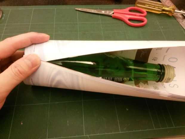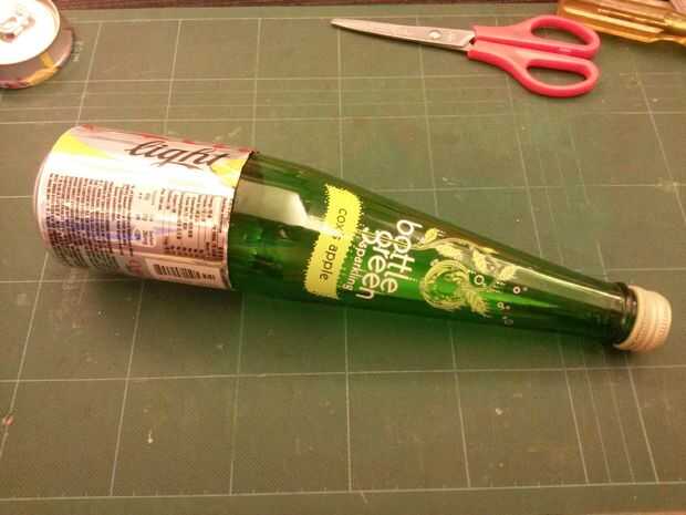 Encontrar una botella ligeramente más pequeño que el puede envolver por una revista vieja y colocar dentro de la lata. Esto forma un apoyo dentro de la lata que evita la deformación.