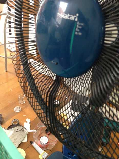 Después de eso, hice un pequeños agujeros en la tapa del ventilador cara caben los sensores. Usé la pistola de pegamento poner algun pegamento detrás de la cubierta para fijar los sensores. Entonces, los cables de la parte 4 de piernas de cada uno de los sensores a lo largo de las líneas de esta cubierta.