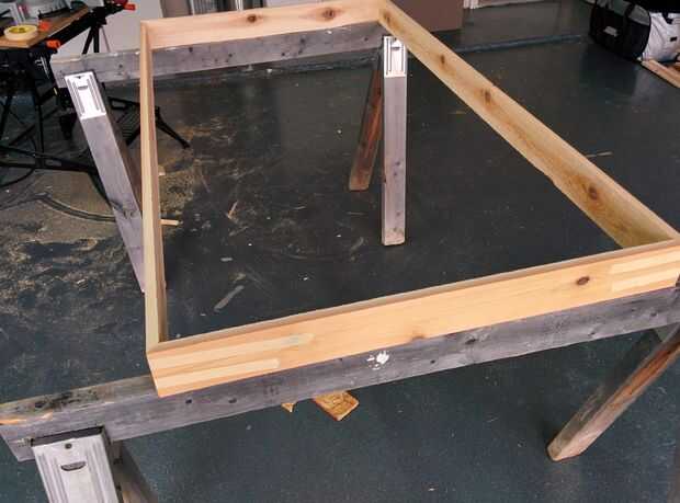 Entonces descubrí que usando tornillos de bolsillo a 1 x 4 a inglete es problemático, o al menos más allá de mis habilidades. Terminé sólo con pegamento en las esquinas y con tornillos de bolsillo sobre las piezas del divisor.