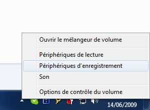 Vamos a hacer clic en el icono de altavoces en la parte derecha inferior de la pantalla y seleccione el menú de grabación periféricos.