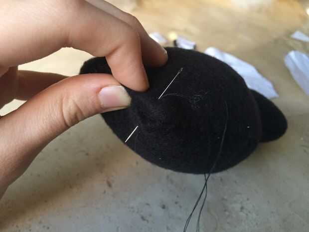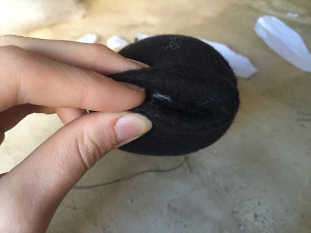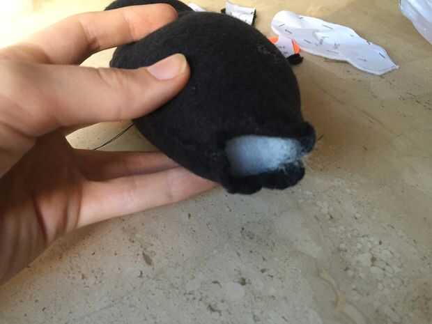 Una vez que la tela está lista llenarla con el juguete relleno a través del mismo orificio que la tela vuelta adentro hacia fuera. Continuación, vuelva a enhebrar la aguja y coser el agujero inferior, recordando que hacer unos puntos extras en el primer y último punto en la línea de la costura.