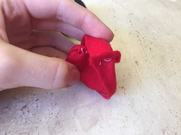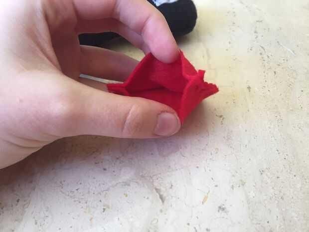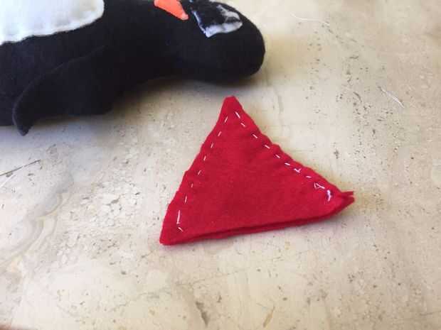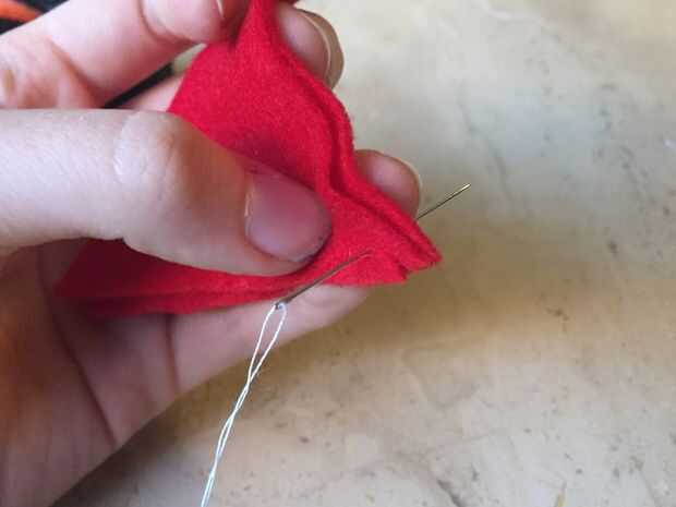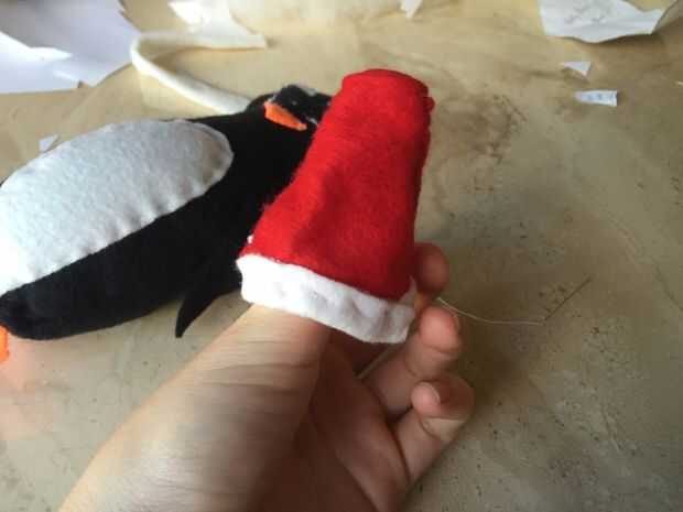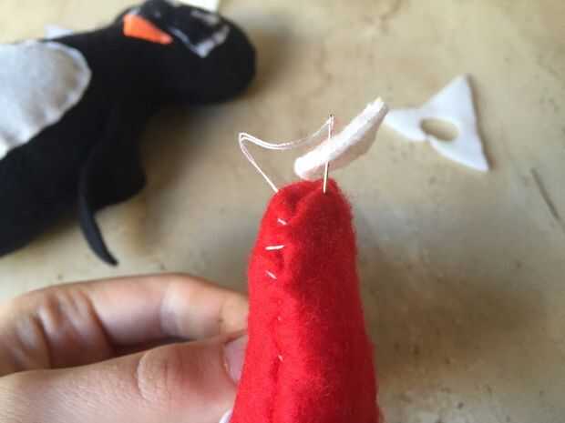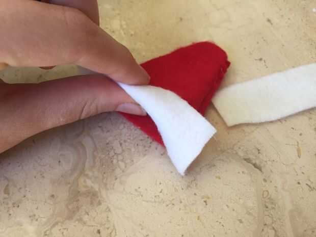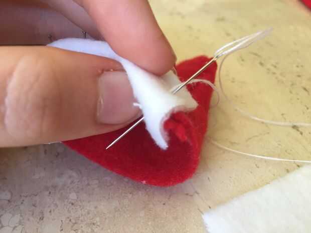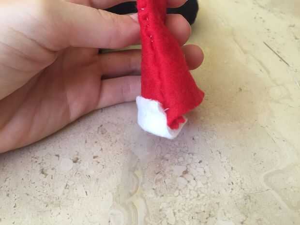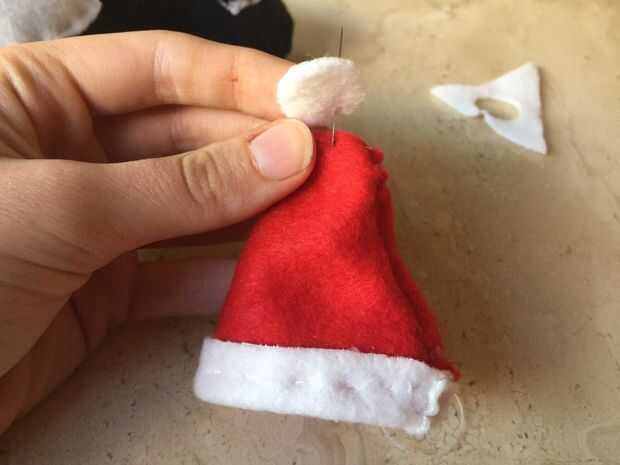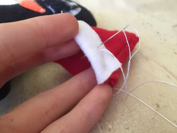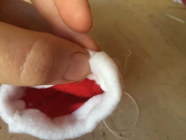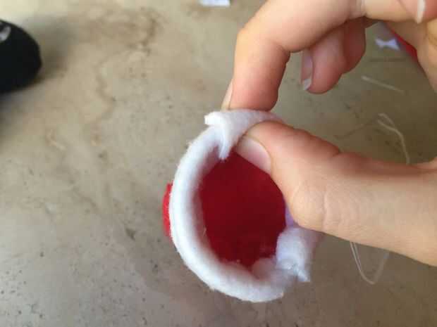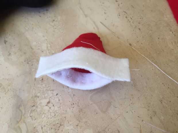 Luego corte un pequeño círculo blanco de la parte superior del sombrero y coser con el hilo blanco.