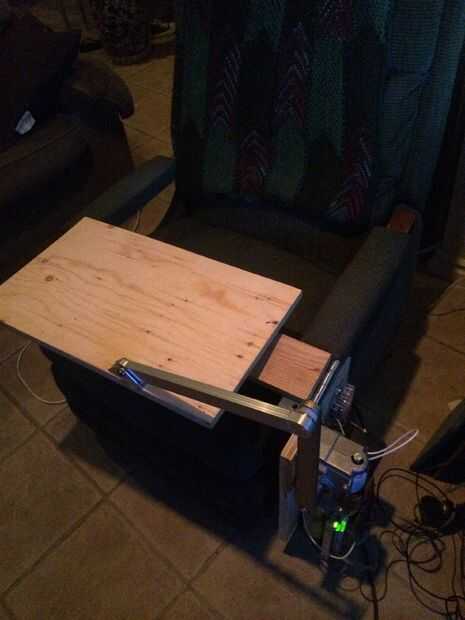 Quería una mesa en mi sillón reclinable por lo que decidí añadir uno a él. Después lo conseguí he decidido que era demasiado inconveniente tener siempre a levantarse para sentarse así que aproveché un paso más allá con las piezas han de realizar trabajos de demolición y hecho con un abridor de puerta automático. Este es mi Instructable 1 así que si te gusta por favor vote por mí, gracias!