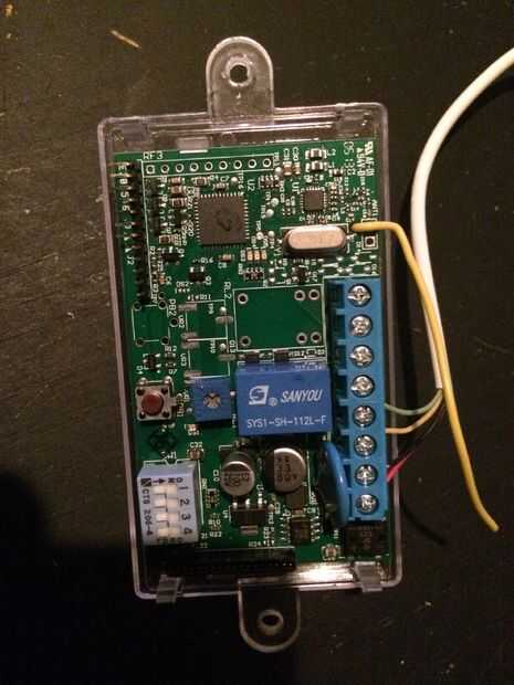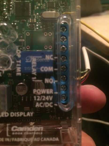Este receptor necesita energía y ser capaces de enviar una señal de 12v desde el relé al control para la apertura. Modo 12/24 v no polarizado para los contactos de la parte inferior y una configuración normalmente abierta para el relé al operador que en este caso (no todos abridores de energía hará esto) suministrará el cable amarillo en la segunda foto es la antena para el receptor.