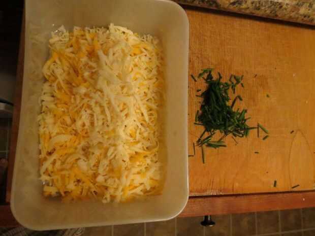 mientras que cocina, rallar el queso y picar algunas cebolletas