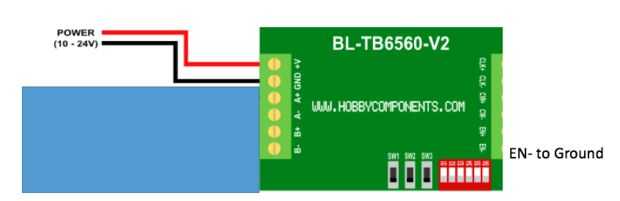 En este paso, dos conexiones se realizan a la TB6560 desde la fuente de alimentación.