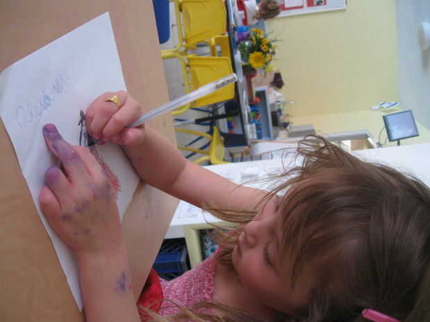 a continuación, cada niño dibujó un cuadro de lo que querían hacer uso de una máquina de coser. Un profesor se sentaba con ellos, tomando notas y haciendo preguntas sobre los detalles deseaban incorporar como qué tipo de mangas en el vestido, de qué color sería algo, si necesitan botones o un cierre o un empate. Un niño pequeño quería su traje para ser un pez víbora que es un pez que vive en el océano donde es tono oscuro. Este pez tiene una linterna en el extremo de una antena mirando lo que viene de su cabeza. Para hacer una linterna de trabajo, investigó creando nuestro propio circuito simple, pero eventualmente buscaron el conocimiento de su padre que tenía un juego de luces LED.