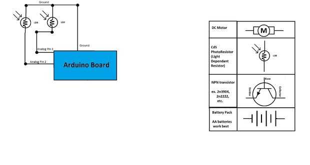 * Dos LDRs conectados a tierra y el pin análogo 1(Right) y 2(left) pin analógico