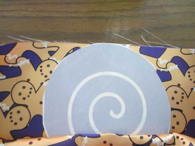 A continuación, prender el borde opuesto del círculo base con el centro de la pieza opuesta de la tela de la "bolsa".