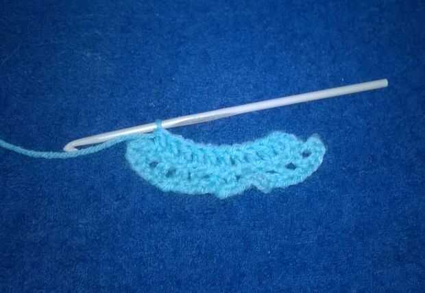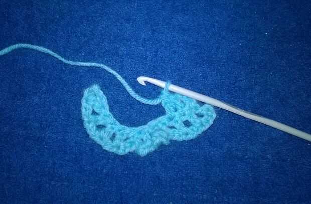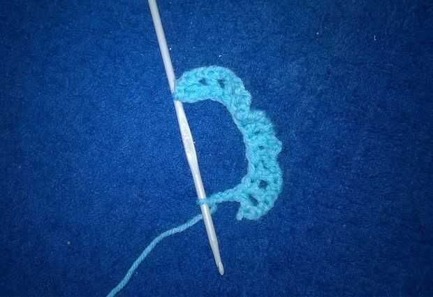 Fila 3 - Ch 3, gire, DC en primer st, * ch 3, DC en próximo st, repetir de * a través de la fila.