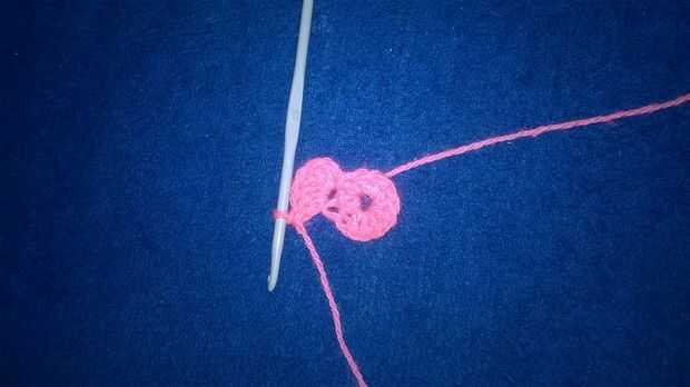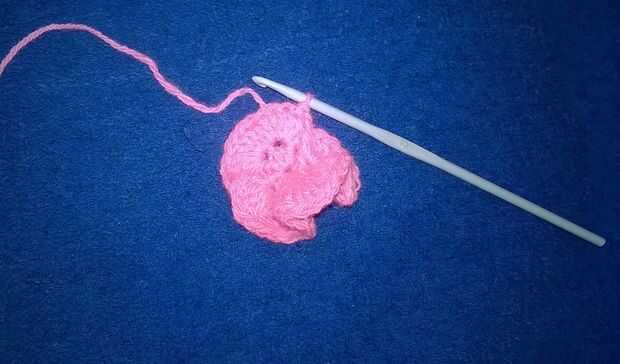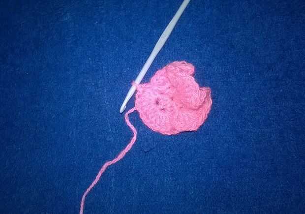 Ronda 2 – hacer 6 dc en cada dc alrededor. Completar la vuelta entera.