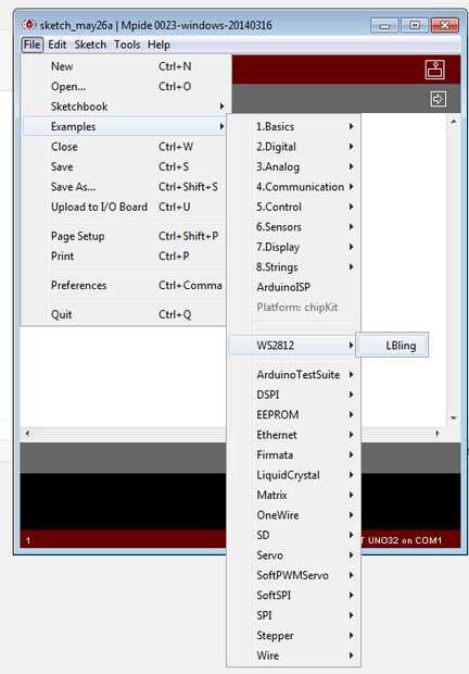 Siguiente--ir al archivo >> ejemplo >> WS2812 >> y seleccione el ejemplo LBling.