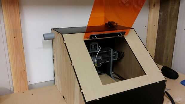 El tipo de caja que depende totalmente de usted, sólo asegúrese de utilizar materiales que no permitirá que la luz del láser para pasar a través. La madera es una gran opción para ello. Hemos hecho nuestro de 1/8" MDF. También asegúrese de que el recinto es cerrado así que como no hay luz brilla a través de las grietas.