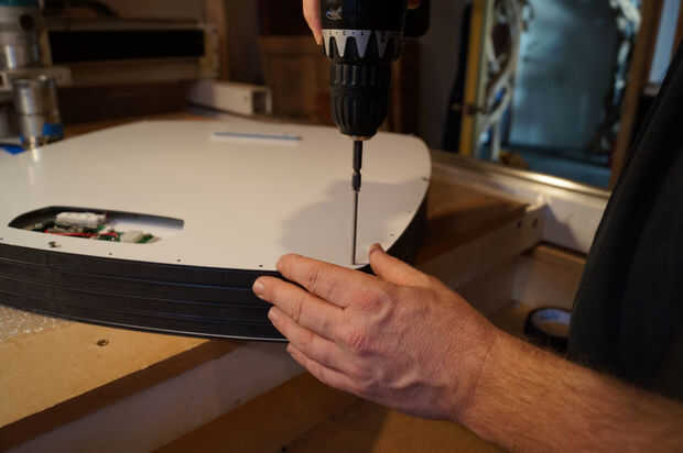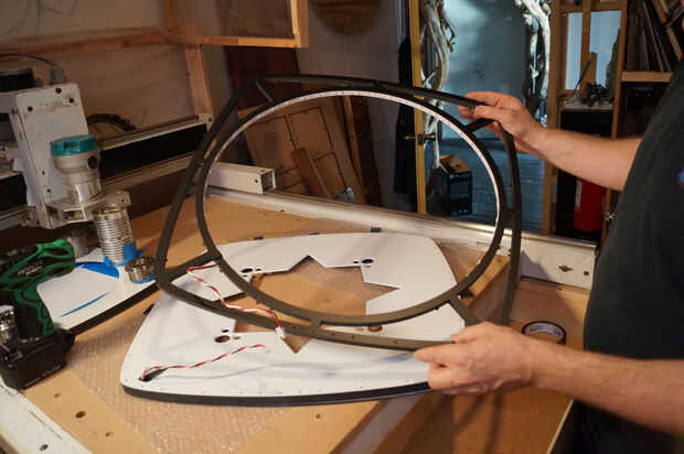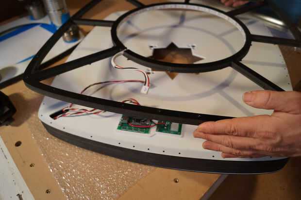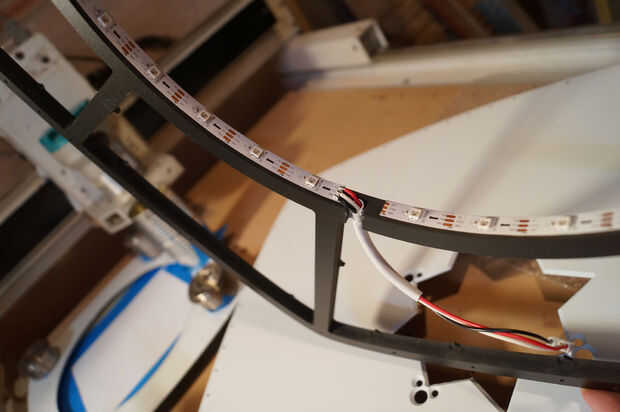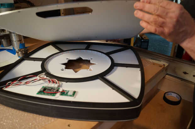 Esta secuencia de imágenes muestra algunos pasos de montaje de la obra. La cara frontal se adhiere con un epoxy de curado lento para dar tiempo a la alineación apropiada. También elimina la necesidad de tornillos en el frente de la obra de arte. Inicialmente traté de cortar las capas de LED de elementos anidados para ahorrar en material residuos. Esto condujo a la Asamblea muy difícil, así que volví a formas todo. Esto fue una lección importante. El ahorro de costes en materiales fue negado por la labor de la Asamblea.