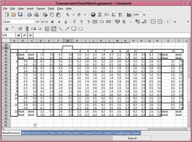 Si todo esto se pierde en ti, he adjuntado una captura de pantalla de la hoja de cálculo. Esta es una lista de los desvíos de espejo para cada uno de los espejos, medida en milímetros. Esto le dará una distancia focal de 72 pulgadas. Funciona bastante bien.