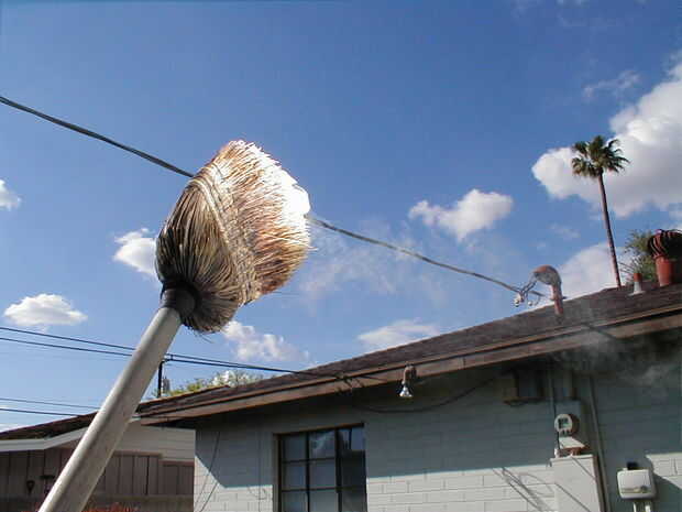 La escoba a continuación tomó sólo 30 segundos a punto de estallar en llamas. No insisto en que concentra la luz del sol es muy peligroso. También muy divertido si eres cuidadoso.