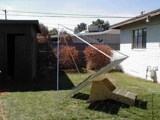 Con el fin de acercarse a la meta de generación de vapor solar, tiene sentido construir un módulo intercambiador de calor. A continuación, abordamos este problema. Resulta un poco más sencillo que el concentrador. El concentrador terminado aquí se muestra en una caja improvisada para sostenerla en lugar. Fue pensada originalmente para ser un marco de seguimiento, pero resultaba poco práctico.