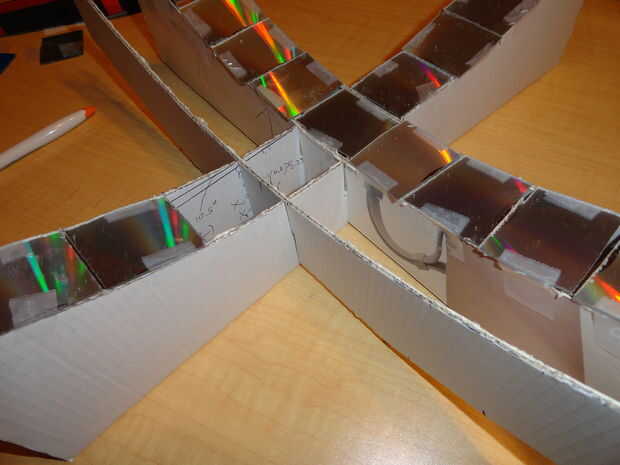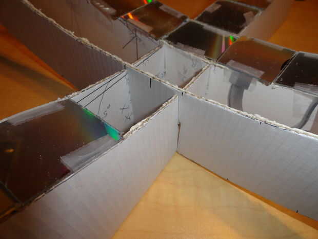 Finalmente Coloque los espejos en las secciones cuadradas usando cinta o pegamento.