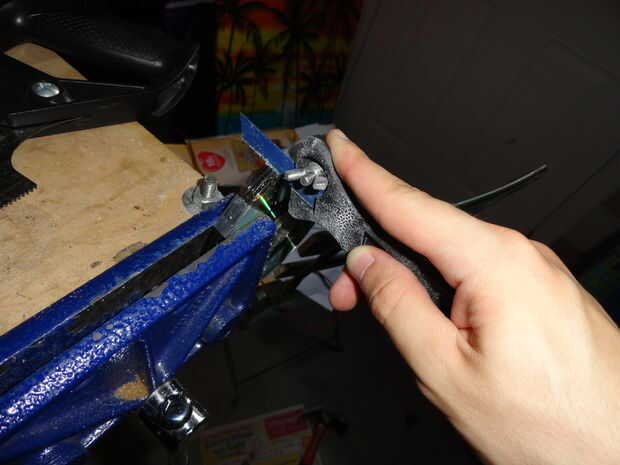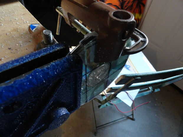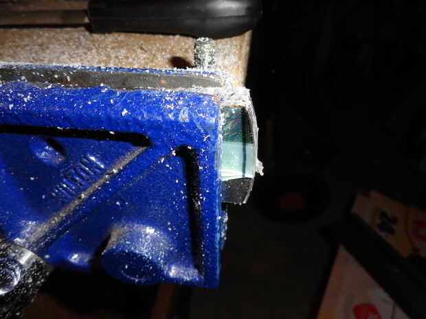 Puse la pila en un tornillo de banco y utilizar una sierra de mano. Sosteniéndolo con las pinzas, así como utiliza la ayudará a evitar grietas.