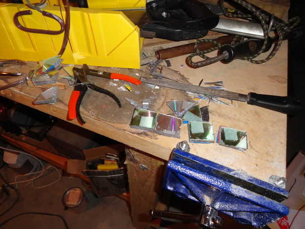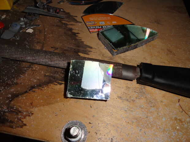 Empecé con una sierra para cortar ingletes, pero eventualmente cambió demasiado una sierra para metales. La sierra tenía una hoja ligeramente más delgada que la sierra para cortar ingletes y se atascó con menos frecuencia. También nunca roto un CD.