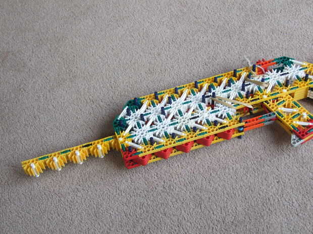 Una cosa interesante acerca de la pistola es que el percutor va bastante lejos en el arma, por lo tanto, por qué necesito cadena del conector amarillo, conectado al pin de disparo, es realmente muy bueno porque significa que puedo descansar mi mejilla en la culata con el percutor hacia atrás. La cadena también es mucho más fácil para sacar el percutor remonta, como no meter los dedos.