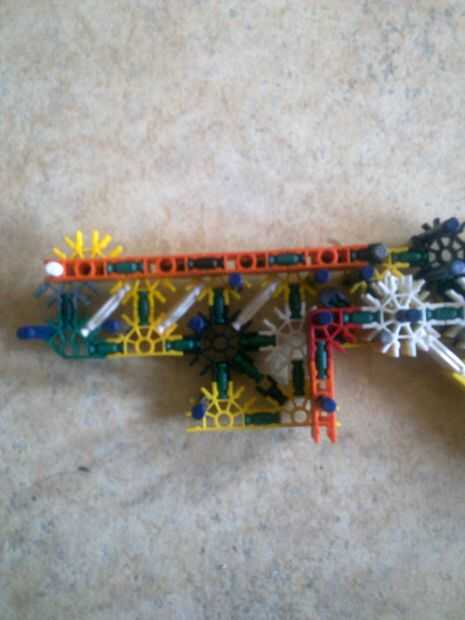 esta es mi versión modificada de escopeta pistola de kNeXFreek.Mejoras-No hay piezas rotas.-Revista es más delgada.-Más cómodo.-Disparador es más simple.-Parte más eficiente.