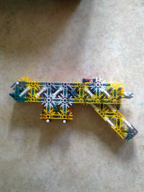 esta es mi versión modificada de escopeta pistola de kNeXFreek.Mejoras-No hay piezas rotas.-Revista es más delgada.-Más cómodo.-Disparador es más simple.-Parte más eficiente.