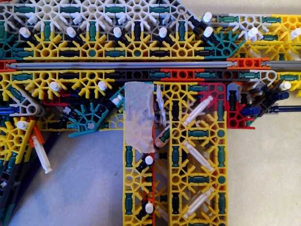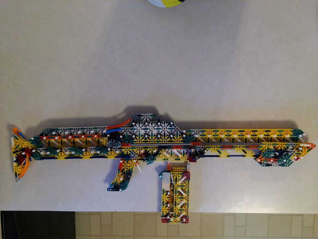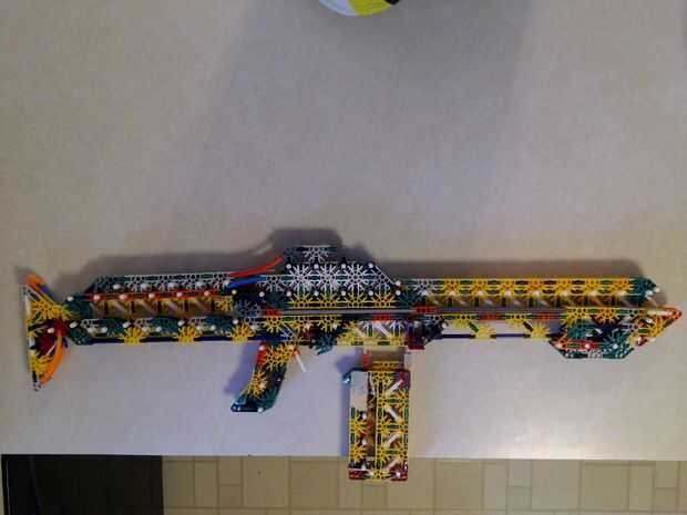 Hola chicos,Ha sido un buen rato! Yo sólo estaba atornillando alrededor tratando de inventar algo nuevo. Esto es lo que tengo, es un mag de carga superior que dispara lo que son esencialmente musket bolas (capuchón negro Unido por una barra verde). H