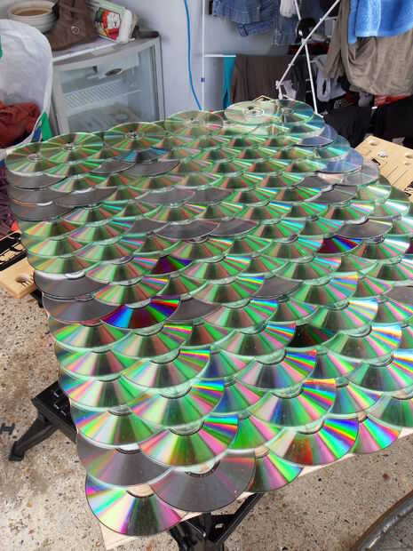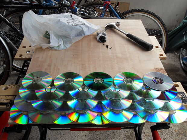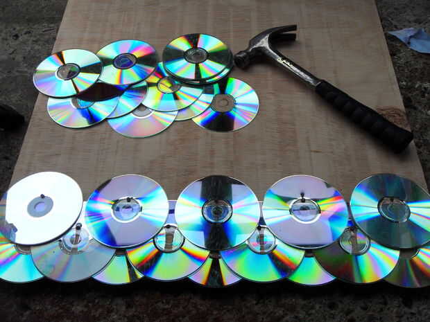 Para la primera capa en el fondo, colocar los discos primero antes de empezar a clavar para asegurarse de que obtendrá la alineación derecha.