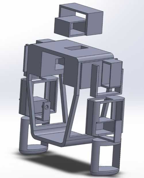 Así que esencialmente he creado un cuerpo para montar tres servos micro. Dos brazos y un cuello. La cabeza es la configuración pan/tilt, para los brazos he creado un hombro para girar la parte delantera y trasera, arriba y abajo, y una superior brazo, codo, darle la vuelta dos de la mano y doblar en el codo de movimiento adicional. Tenía la esperanza de crear algo que oculta los servos más y más como armas, pero aún no soy hasta ese nivel. También estuve tentado a utilizar algunos pre-hechos archivos, como http://www.thingiverse.com/thing:34829 de thingiverse y solo em pega en un lado, pero no habría ningún proceso de aprendizaje en.