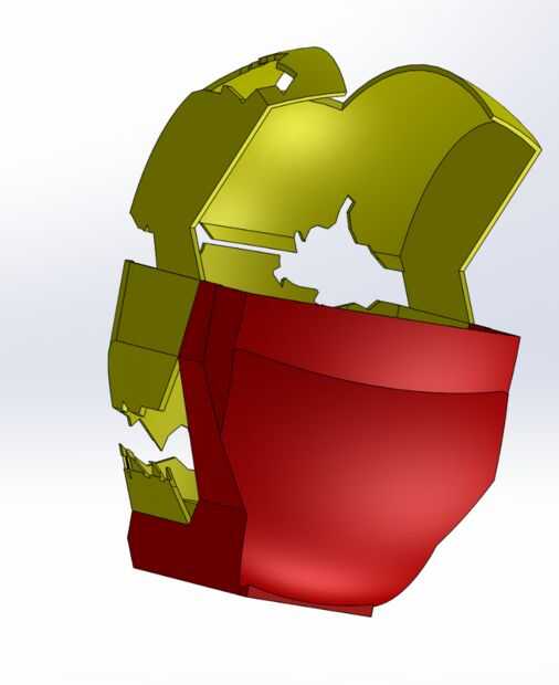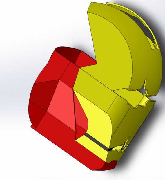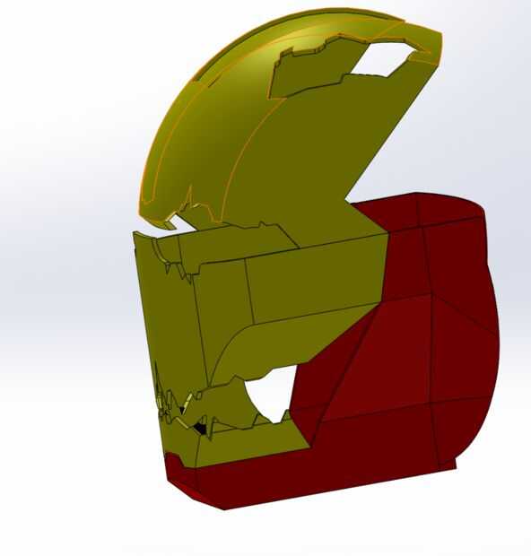 Para la cabeza he seguido este https://www.youtube.com/watch?v=cMP93x4XFeg video YouTube. No es el más preciso y agradable diseño, pero hace el trabajo. Creando la cabeza básicamente requiere de la mirada de casco frontal la firma, y luego sentirán algunos "lágrimas" para darle un Ultron. Una búsqueda rápida en Google y verás que la parte superior de su cabeza le falta, así que es por qué la dejé hacia fuera. Y para crear las rasgaduras en la cabeza spit-mirado y simplemente corte poco bits y piezas. Los colores son sólo para las miradas, pero probablemente esto imprimiría en una combinación de gris/azul a hacer lo mismo con la película y por el hecho de que no es en realidad hierro hombre a sí mismo. Una vez impreso, me gustaría añadir algunas luces a él, para darle un efecto enfriador.