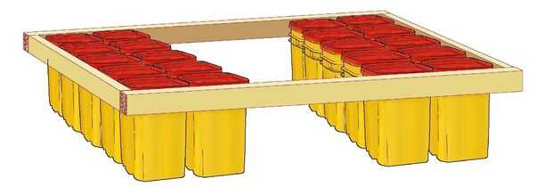 A continuación, construyo un marco alrededor de los cubos. No señalarlo, pero creo que amarre PVC o CPVC a lo largo de las ranuras en la parte inferior de los cubos, y entre los cubos, se dará buena cohesión y permiten la flexibilidad y fuerza. Los cubos tendrá que ser capaz de flexión ligeramente con ondas e impactos menores, pero también mantener una forma estable. Finalmente, alrededor del borde superior de los cubos, a construir el marco para la plataforma de observación de la madera tratada.