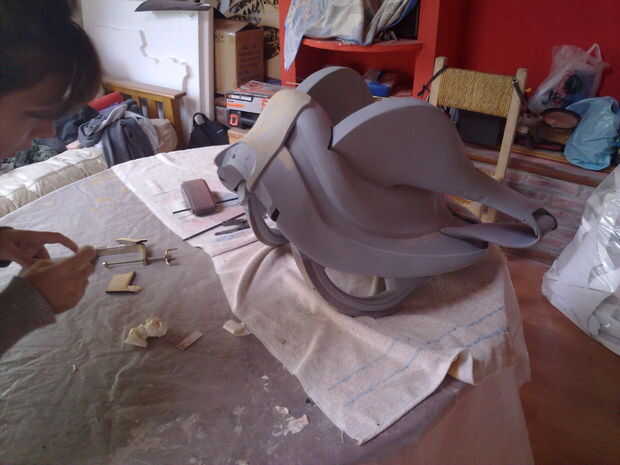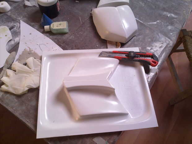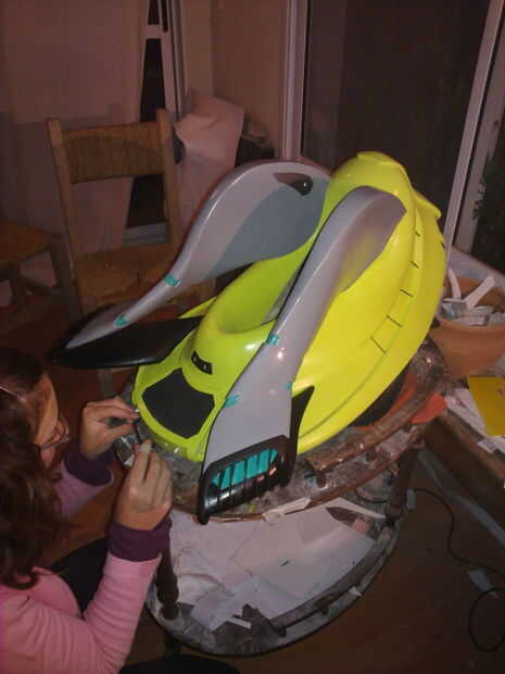 Edificio el láser involucrados modelo plásticos de termoformado madera, corte, conformación styrophoam, un montón de pegamento, fibra vidrio y resina, pintura mucho lijado y coche.