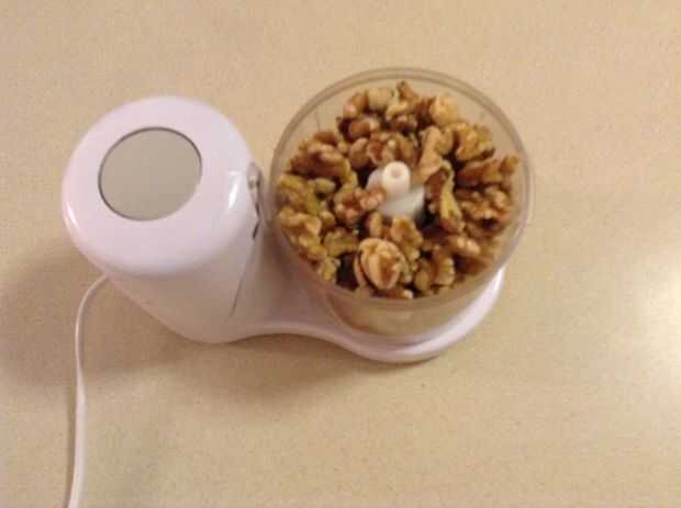 Pulsar las nueces picadas ligeramente con una espátula para que las tuercas se adhieren al chocolate.