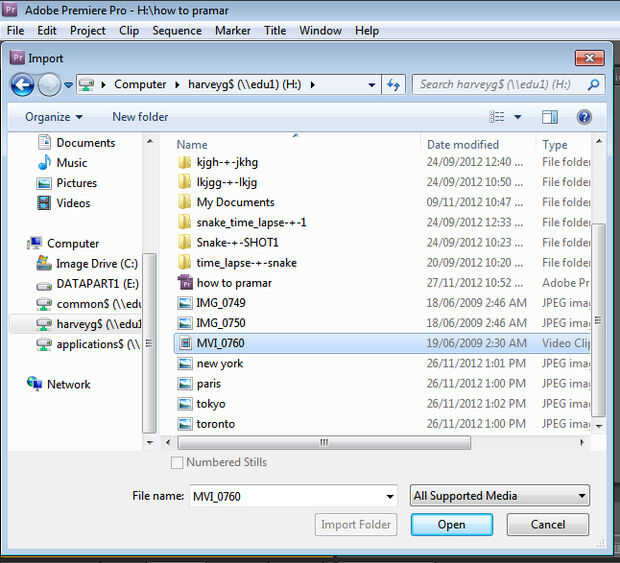 La ventana de importación abrirá y a partir de ahí sólo encontrar y abrir tu película
