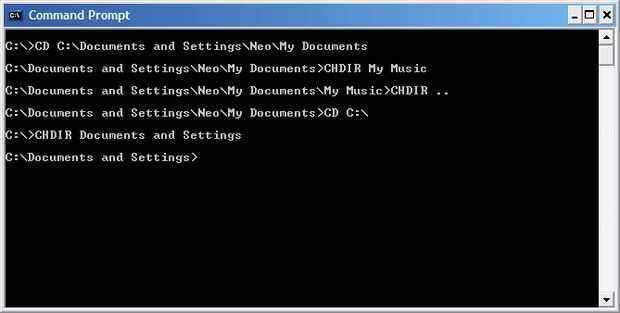 El comando CHDIR se utiliza para obtener alcance lugares cerca sin tener que escribir la dirección completa una y otra vez.
