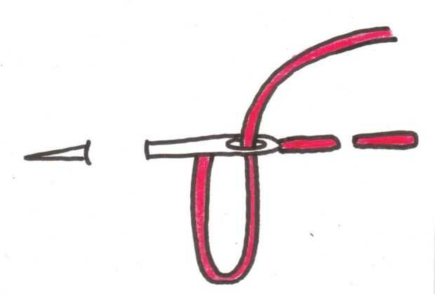 3. vamos para arriba otra vez con la aguja un poco en frente de su nudo.