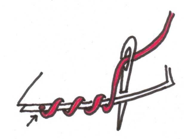 2. bajar de nuevo por el lado derecho de la tela, de unos 5mm de donde subió.
