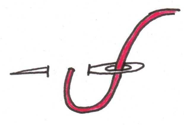 1. ir a través de la tela con la aguja por el revés, para que el nudo se termina en la parte posterior.