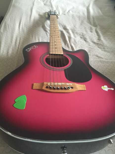 Una guitarra que ha adecuado sonido para acordes a y recoge cualquier color pero delgada