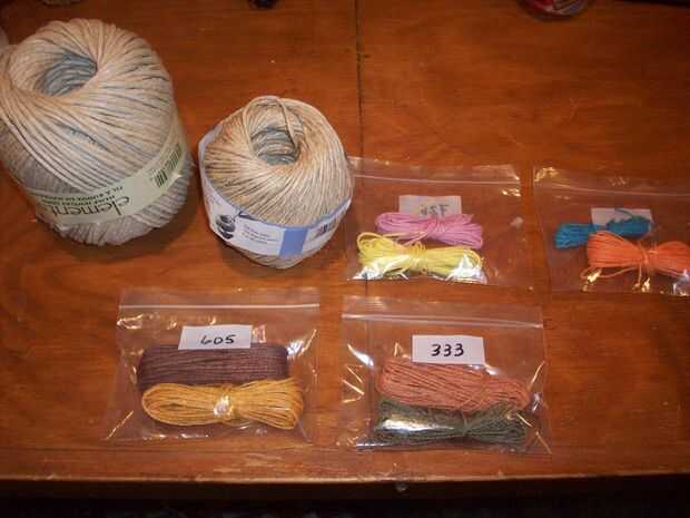 Hay tres tamaños básicos: fino, medio y grueso. Cáñamo viene en su color natural. Pero también viene en colores teñidos. Casi cualquier color imaginable. En walmart tienen cáñamo natural y unos colores diferentes pero si realmente quieres colores fríos necesita ir a una tienda de artesanía local.