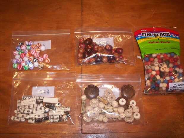 Los granos son opcionales. Usted puede conseguir cualquier tipo que desee siempre y cuando el agujero es lo suficientemente grande como para al menos una cadena. Walmart tiene una gran selección, pero si quieres un montón de coices ir a pasillo de la manía o Michaels. También seguramente en cualquier tienda de artesanía las tendrán. También se pueden utilizar colgantes y charms.