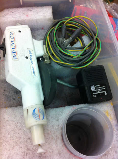 hoy en la tienda de tecnología de Pittsburgh, tomé una clase en chorro de arena y capa del polvo. Capa del polvo es una técnica fantástica para casi cualquier metal en que puede pensar la pintura. No sólo eso, es bastante sencillo, más seguro que otr