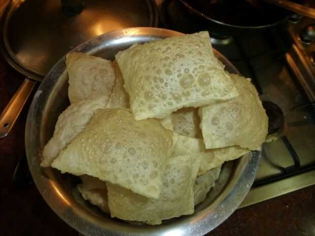 Poori es un frito indio los panes sin levadura, normalmente cocinados para el desayuno en el norte de la India. Pooris son normalmente de forma redondas. Pruebe a cortar la masa aplanada con un cortador de pizza en cuadrados y ver cómo verá diferentes. Usted puede cortar en muchas formas diferentes también para hacerlos más atractivos.
