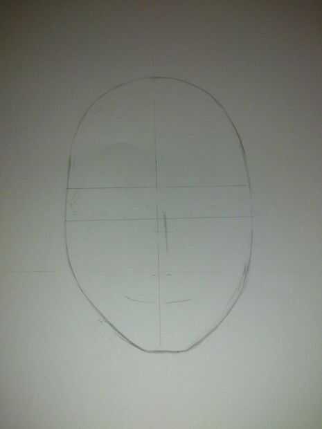 Aquí va a iniciar como ves en la foto con el dibujo de una forma ovalada entonces la mitad de la tapa a la parte inferior de la línea, esto ayudará a que su dibujo sea más fácil. A continuación, trazamos dos líneas desde la izquierda a la derecha con espacio de 2 a 3 Cm entre cada uno, luego una línea que separados de la parte inferior unos 4 Cm. Una lápiz H hará mejor en lo básico si usted tiene uno.