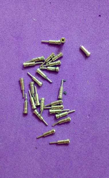 Las cabeceras de pin que utiliza son bastante baratas, en eBay son menos que $1 para 100pins. Cuando se les que las clavijas están todavía dentro de la carcasa de plástico moldeada, quité el plástico pero puede dejar. (No tengo fotos del retiro de los pernos, como lo hice antes de que decidí hacer un instructable.)
