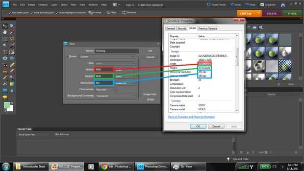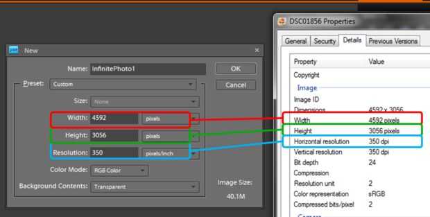Coincidir con la longitud, anchura y DPI(resolution) de tu foto para el nuevo archivo de Photoshop.